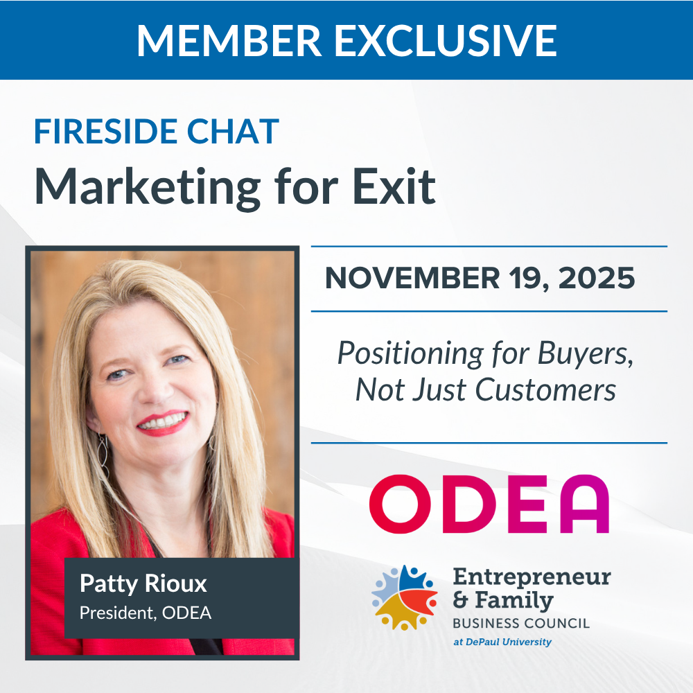 Join us on November 19th for a Fireside Chat with Patty Rioux of ODEA on using marketing and brand strategy to position your business for future buyers and long-term success.